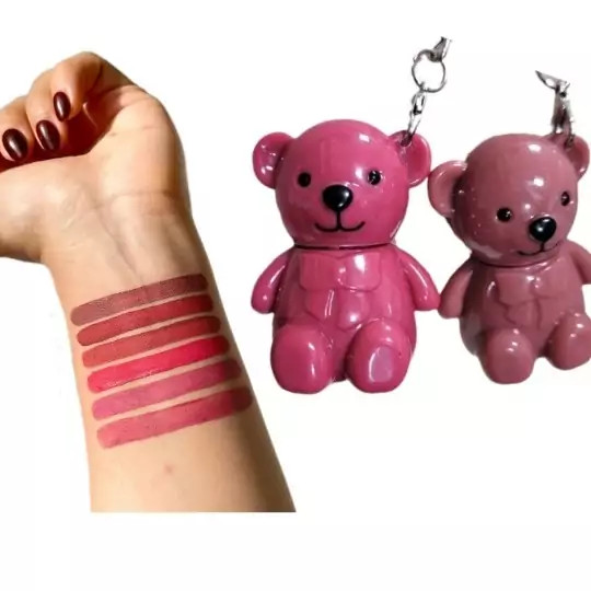 رژلب خرسی دارای شش رنگ جذاب مات است. رنگبندی رژلب خرسی جاکلیدی کاملا متنوع است و فوق العاده زیبا هستند. طراحی پوکه به شکل خرس جاکلیدی آنقدری جذاب است که با یک نگاه عاشقش می شوید. بسیار نقلی و شیک است و فضای زیادی را اشغال نمی کند و براحتی می توانید همیشه و در هر مکان با خود همراه داشته باشید. بعد از استفاده از رژلب می توانید از پوکه جذاب اش به عنوان جاکلیدی استفاده کنید. رژلب مات خرسی بسیار با کیفیت است و هرگز روی لب هایتان پوسته پوسته نمی شود. لب ها را کاملا نرم و لطیف می کند. ظاهری مات و مخملی روی لب ها ایجاد می کند. پوشش دهی کامل و صاف یکدست به لب ها می دهد. بافت رژ لب خرسی بسیار نرم و کرمی است. و همچین ماندگاری بالایی دارد. و بعد از استفاده هیچگونه چسبندگی ایجاد نمی کند. ظاهری زیبا و دلنشین که حتی می توانید به دوستان عزیز خود هدیه دهید.